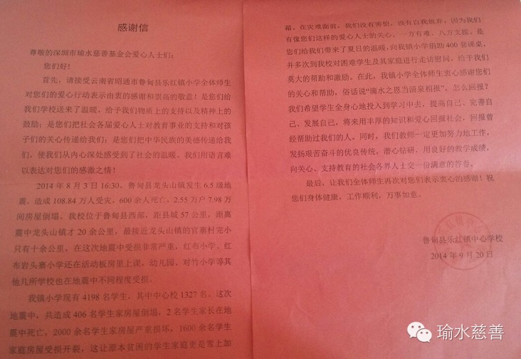 2014年9月21日,深圳市瑜水慈善基金会“情系鲁甸”项目在云南省鲁甸县乐红乡中心学校开启,并在现场举行了首批物资——400套双人课桌椅捐赠仪式。瑜水慈善基金“情系鲁甸爱心团”李刚、李倩、常霞、陈赤卫、汪明锋、王小月、李磊、郑丹拉、谢雅名、彭彪十人参加捐赠仪式,乐红乡镇委书记,中心学校书记黄卫、校长孙世权,新林完小校长舒荣文,官寨完小校长阮殿磊,对竹完小校长马兰府,乐红完小校长刘同辉,施初完小校长伍益辅,学生代表刘东向、罗登琼等出席。 乐红乡位于鲁甸县西部,是鲁甸最偏僻的一个乡镇,东与龙头山镇接壤,距“8.03”地震中心仅十多公里(直线距离)。全乡山高谷深,土地贫瘠,每户年收入三千元左右,当地居民大都以土豆、玉米为主食。据了解,全乡留守儿童问题严重,仅乐红中心学校1327名学生中就有80%的学生是留守儿童,其中280多名十岁左右的孩子完全处于无成人照看的境况,这些孩子周一至周五放学后基本上属于自生自灭的状态。全乡小学生中还有单孤儿童202名,双孤儿童33名。 乐红中心学校位于乐红乡官寨村尖山社吉丫口,下辖全乡11所小学,学生总数4198名,“8.03”地震中,共造成406名学生家庭房屋倒塌,2位学生家长和1位老师在地震中遇难,2000余名学生家庭房屋严重损坏,1600余名学生家庭房屋受损开裂。 9月20日上午6时,“情系鲁甸爱心团”在李刚队长的带领下,从深圳出发,经昆明转车,风雨兼程奔赴鲁甸灾区第一线。为那里的孩子们献上爱心,送去温暖,播撒爱的种子,传递爱的希望。由于灾后不久,加之前期的连天大雨使得山区道路泥泞崎岖,一路上山石塌方随处可见,路途维艰。“情系鲁甸爱心团”在重灾区龙头山镇因道路泥泞遭遇交通堵塞,当晚22时方才抵达乐红乡。 21日上午,“情系鲁甸爱心团”步行3小时,深入山区走访慰问困难学生家庭,详细了解询问贫困生家庭的生活状况、收入情况,并给他们送去了慰问品。与此同时,瑜水慈善基金会首批援助物资——400套双人课桌椅也运抵乐红乡。下午13时,“情系鲁甸”课桌椅捐赠仪式在乐红中心学校举行,李刚受曾韵蓓理事长委托,代表瑜水慈善基金会致辞,陈赤卫代表深圳市湘潭商会向灾区人民致以诚挚的问候,李倩代表爱心企业发言,常霞代表爱心人士交流所见所闻、所感所悟。为了使救援工作能够在地震灾区持续有效地开展,期间,“情系鲁甸爱心团”还与乐红中心学校及当地政府举行了座谈会,会上大家分享了救援经验,探讨了救援工作中存在问题和解决办法,并就下一步救援工作方向展开了讨论。 “情系鲁甸”项目是深圳市瑜水慈善基金会成立以来第一个援助灾区的项目,也是至今为止发动人数及参与人数最多的一个项目。本次项目活动对瑜水基金会影响深远,意义重大。不仅让我们感受到了众人拾柴火焰高的力量,通过这次活动,也使得我们的组织、工作逐渐走向成熟。 截至9月21日,本次活动共募集善款172437元,现已到账172437元,爱心捐赠人士分别为: 唐雪梅20000元、李娜200元、常施常乐50000元、谭中卫1000元、李刚1000元、齐双凤500元、朱莎1000元、林楚钦500元、蔡妍1000元、宋佳音500元、张文馨1000元、易芳1000元、朱艾妮300元、李强200元、刘利桦1206元、蔡武军2000元、成时宇1000元、龚浪花500元、刘少方500元、刘强500元、杜祝英600元、颜娜500元、楚志平500元、戴国强500元、肖乔中500元、陈赤卫1000元、贺贤赟1111元、李阳清600元、周爱萍6000元、银宽酒业50000元、左泽亮520元、曹小灿1000元、冷晓莲1000元、朱麒里1000元、李湘泉500元、郑年芬100元、陆建林2000元、谢作林100元、林雪慧500元、查懿莲500元、郭力宜10000元、郭湘玮10000元。 灾难无情,人间有爱,相信鲁甸在全社会的共同关注下,会创造一个又一个奇迹。相信社会各种爱心力量的汇聚,一定能帮助鲁甸战胜困难,走出困境。 (瑜水慈善基金会秘书处) |