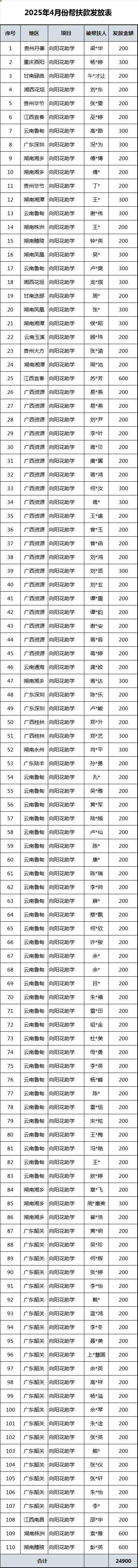 向阳花助学 | 2025年上半年助学金发放公示尊敬的各位爱心捐助人: